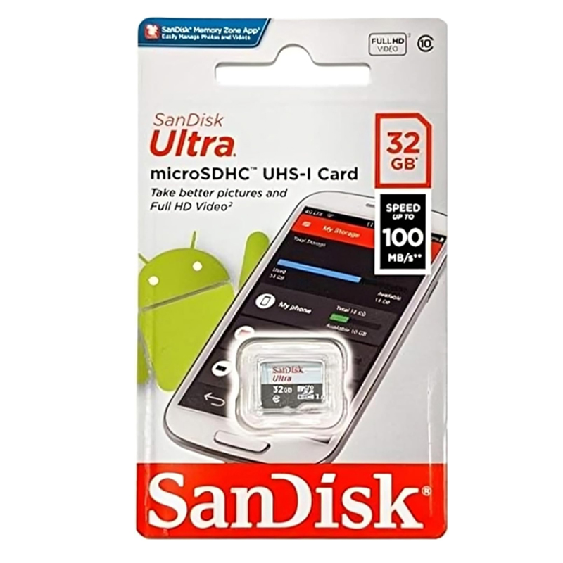 بطاقة ذاكرة سانديسك الترا مايكرو اس دي اتش سي يو اتش اس-1 بسرعة 100 ميجا في الثانية مع محول بسعة 32 جيجا