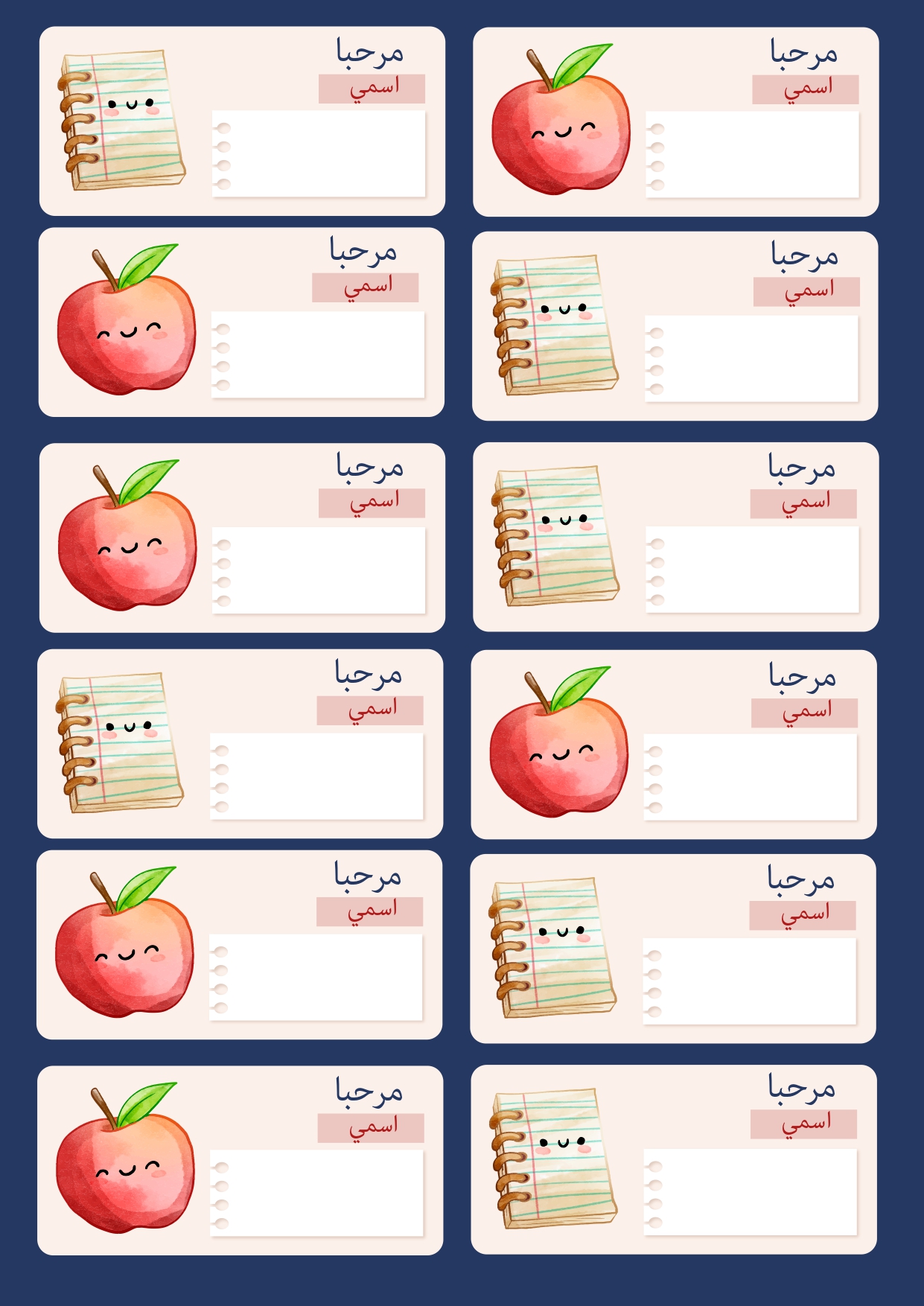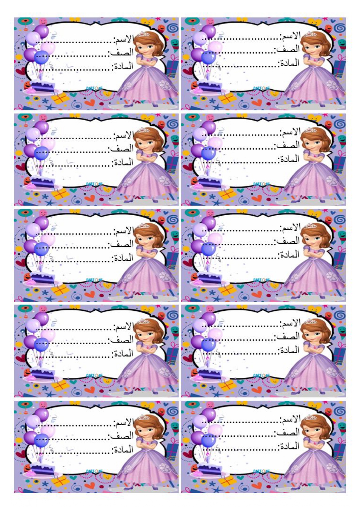 ملصقات أسماء – 12 تصميم مختلف برسومات لطيفة