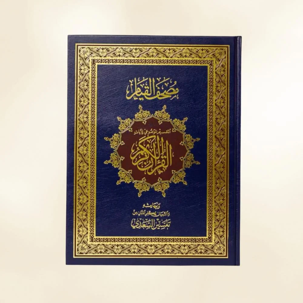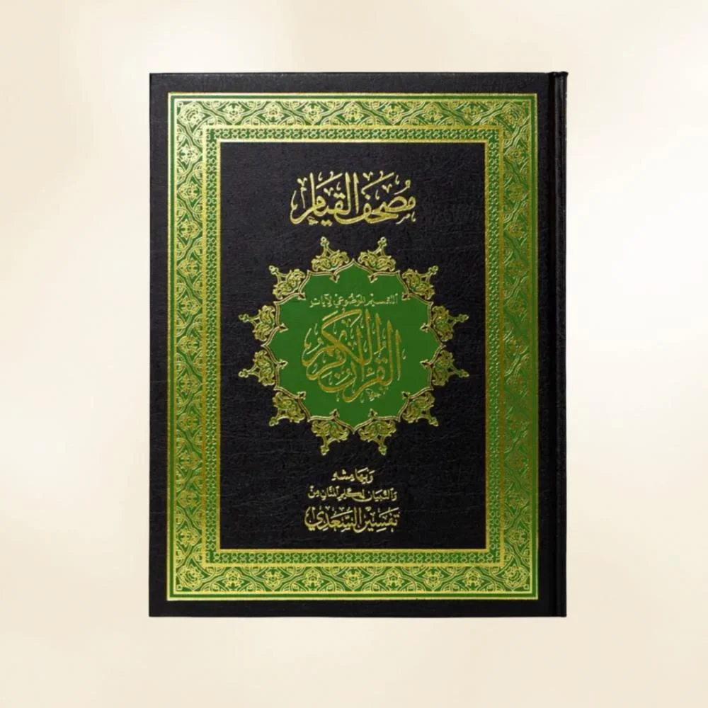 يمتاز مصحف القيام بخفة الوزن وتسهيل ختم القرآن ، فكل صفحة من مصحف القيام تحتوي على خمس صفحات من المصحف العادي وأيضا تلوين الآيات وشرحها حسب الموضوع وسبب النزول.
