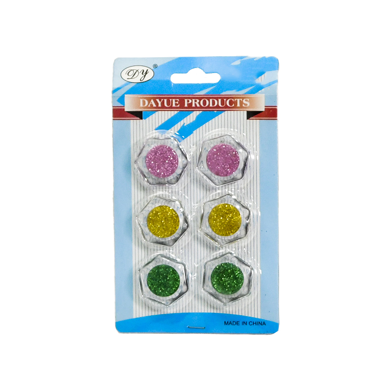 Glossy magnets in various colors for use on whiteboards or for general paper-holding purposes.